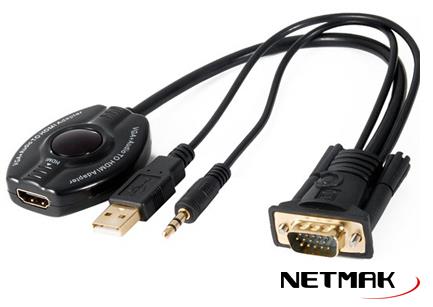 CONVERSOR DE VGA + AUDIO PLUG 3.5MM A HDMI - M A H - NM-C63 - NETMAK...