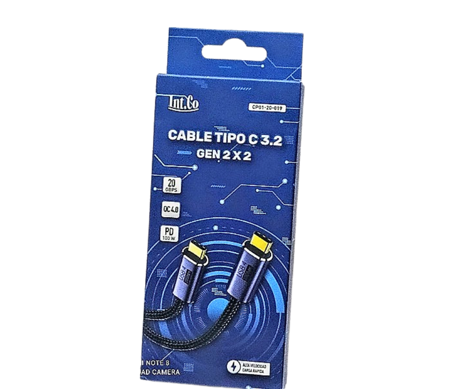 CABLE USB 3.2 TIPO C A TIPO C - CARGA RAPIDA - THUNDERBOLT3 - M A M - MALLADO - CP01-20-019 - INT.CO