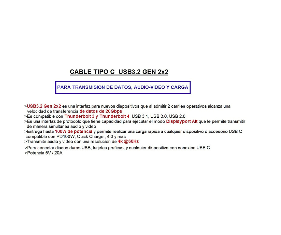 Cable Tipo C 3.2 Gen 2x2 compatible con Thunderbolt 3 y 4