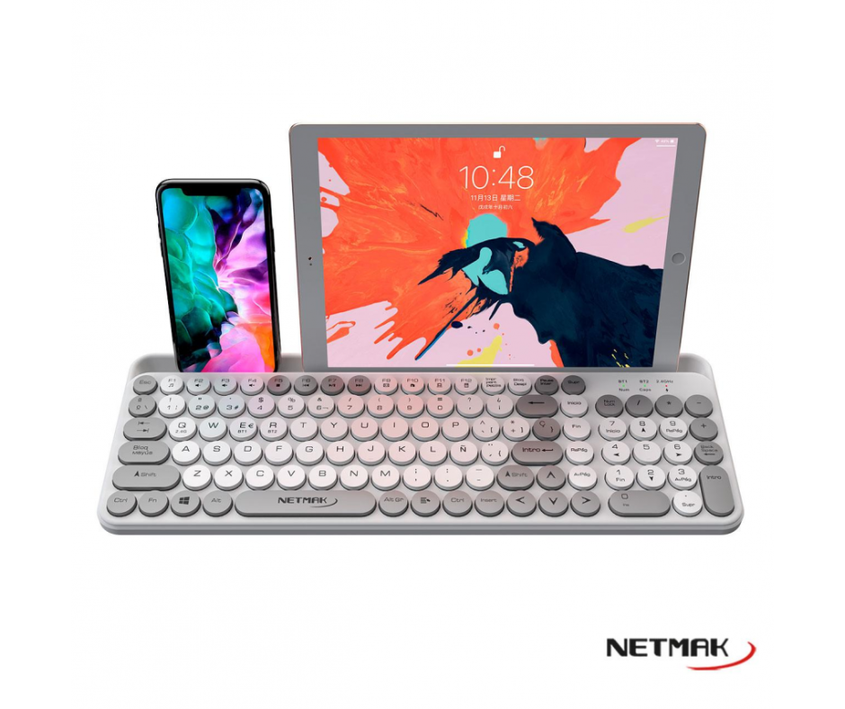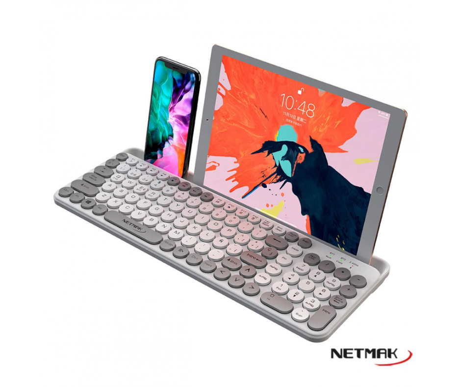 TECLADO BLUETOOTH 5.0 + 2.4GHZ - TABLET + CELULAR - BLANCO - NM-KB380W - NETMAK