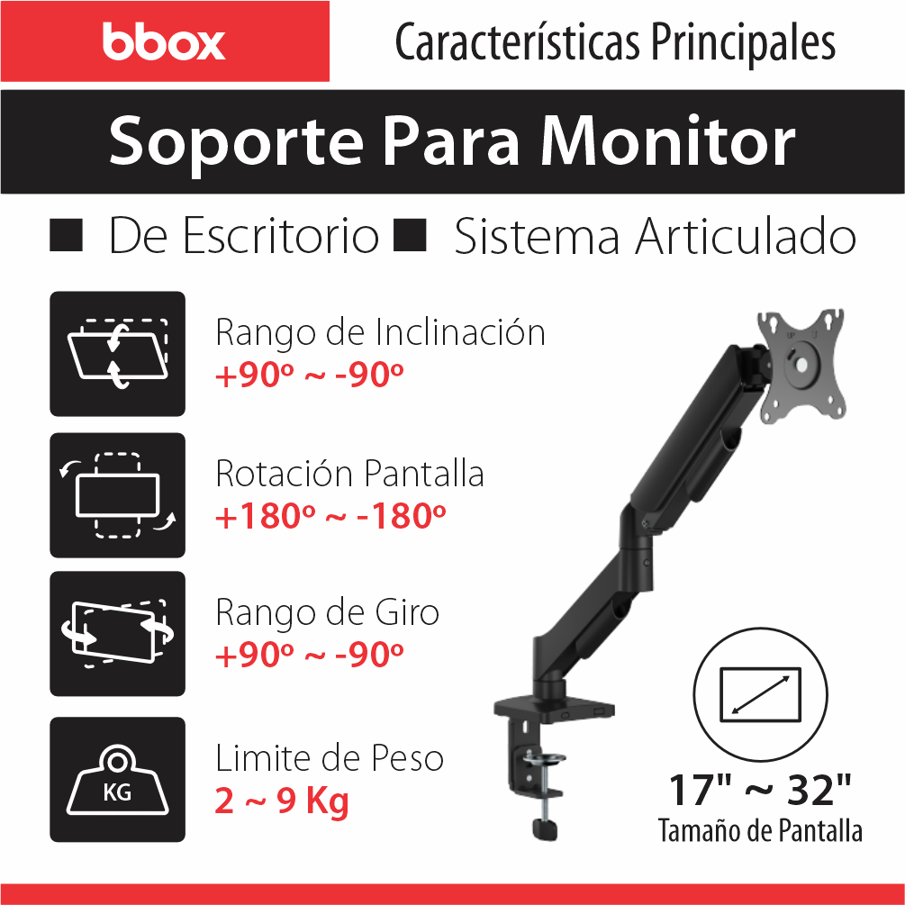 SOPORTE ESCRITORIO MONITOR - 17 A 32 - VESA 100X100 MM. - BBX00008 - BBOX
