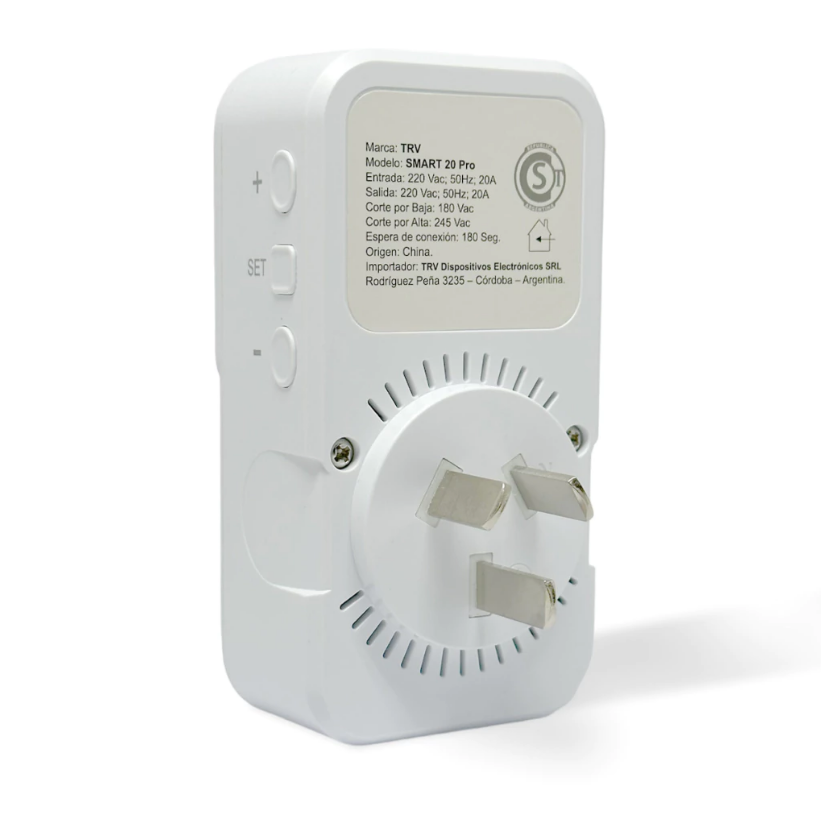 PROTECTOR DE TENSION - SMART 20 PRO - 1 TOMA 20 AMP - DISPLAY DE TENSION - CORTES PROGRAMABLES - 20A 50HZ 220V - SMART-20-PRO - TRV