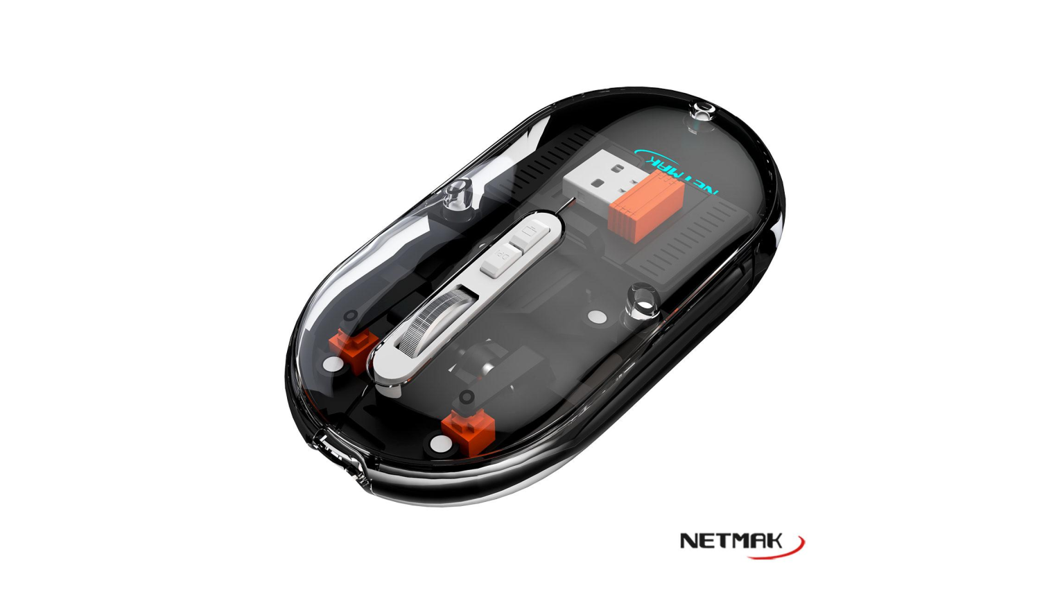 MOUSE BLUETOOTH 5.0 - M670 - TRANSPARENTE NEGRO - NM-M670 - NETMAK